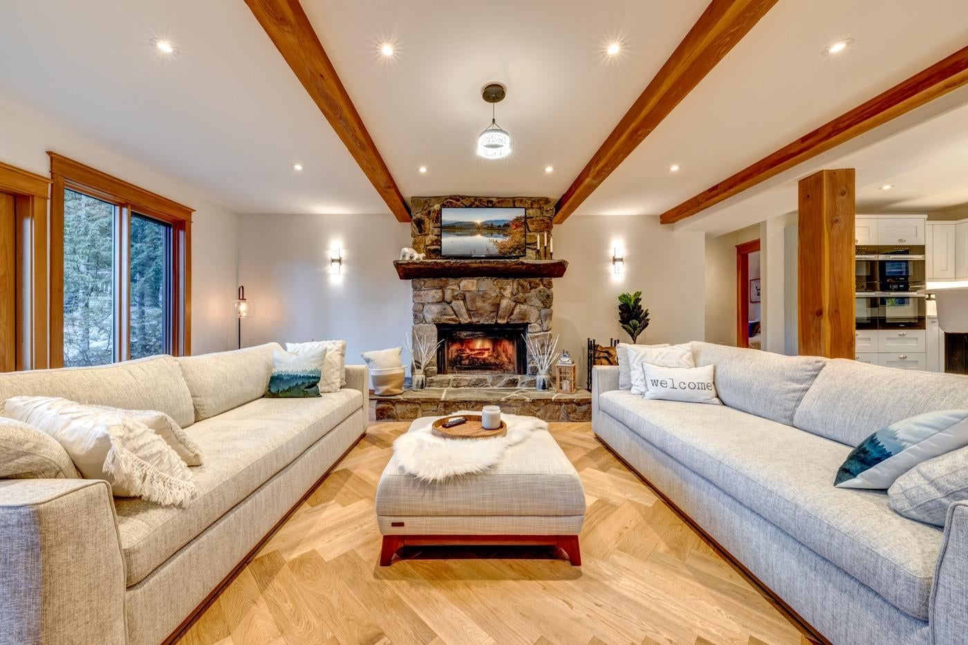 Experience ultimate mountain luxury with this sensational 5-bedroom, 4-bath post-and-beam masterpiece at the top of Mountain View Drive. Set on a spacious 13,044 sq ft lot with 3,520 sq ft of refined living space, this home showcases sweeping Whistler and Blackcomb vistas through grand windows that flood the interior with light. Three fireplaces warm elegantly crafted spaces, while the chef’s kitchen, featuring oak cabinetry, Miele appliances, and heated tile floors, forms the heart of the home. Upstairs, three large bedrooms open onto a south-facing patio with a hot tub. Luxurious bathrooms offer marble vanities, copper and stone bathtubs, and heated floors. A double garage with room for your gear completes this magnificent retreat, perfect for your family and adventures.