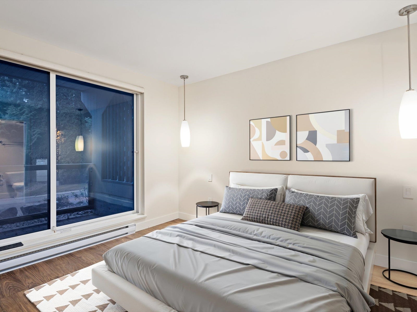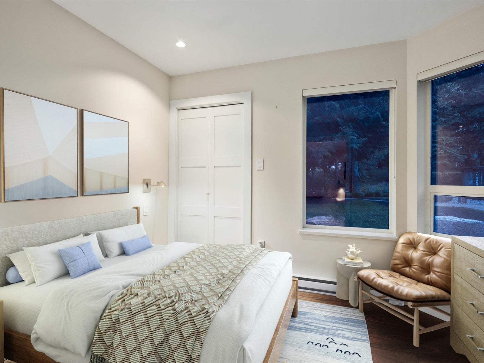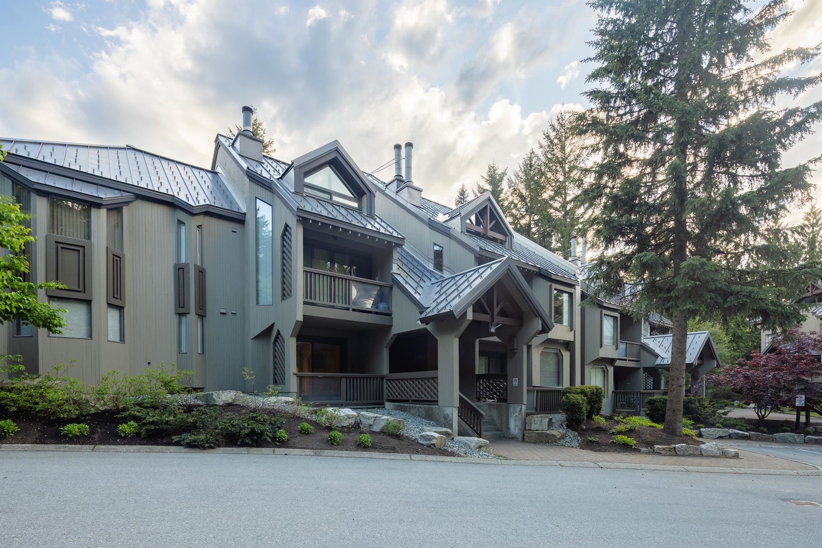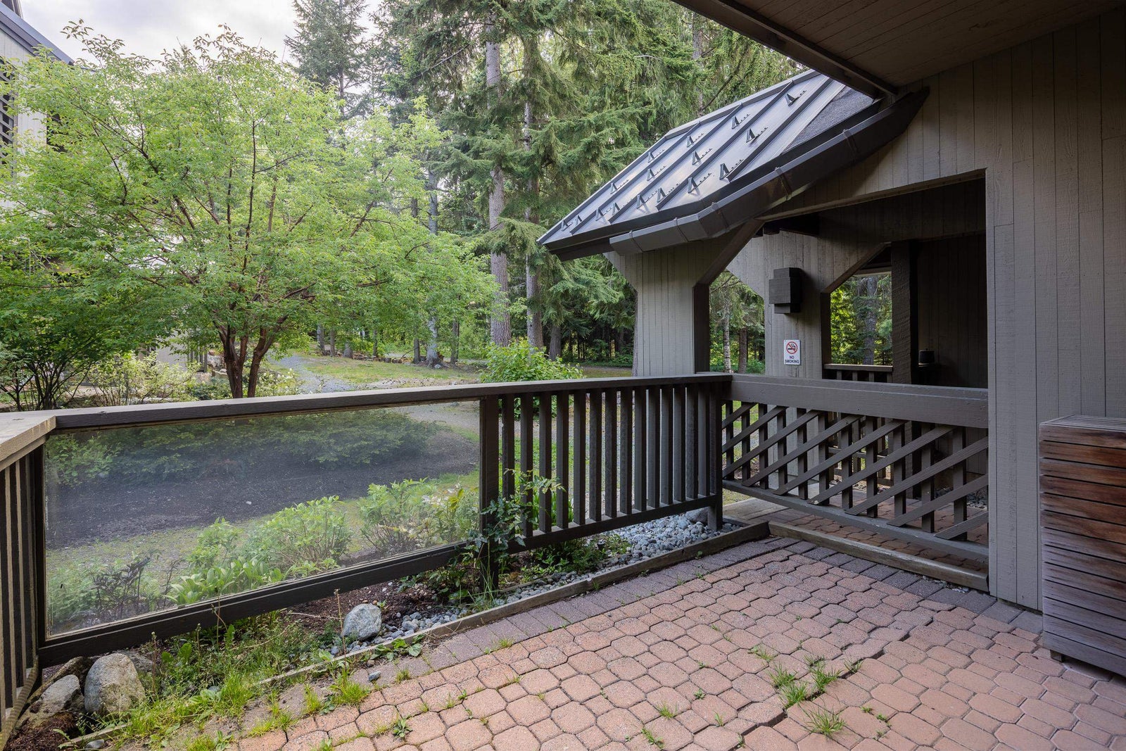 Ideally positioned between the base of Blackcomb and Whistler Village gondolas, The Gables offers one of Whistler’s most coveted locations. This modern 2-bedroom, 2-bathroom townhome is thoughtfully designed on one spacious level, nestled among mature trees near the Fitzsimmons Creek trail. The sleek kitchen showcases stainless steel finishes and custom concrete countertops, complemented by a striking concrete fireplace, electronic blinds, and WiFi thermostat. Heated floors in the entry and bathrooms add warmth, while bedroom separation ensures privacy. Zoned for unlimited owner use and nightly rentals, this home suits those seeking a private mountain escape with excellent income potential.