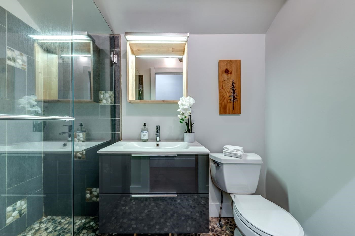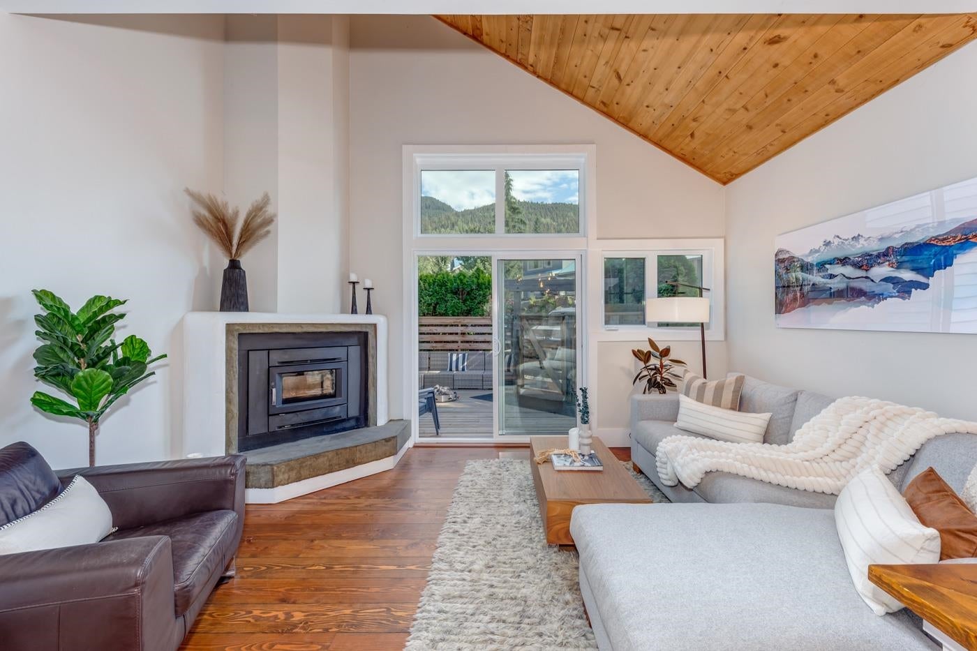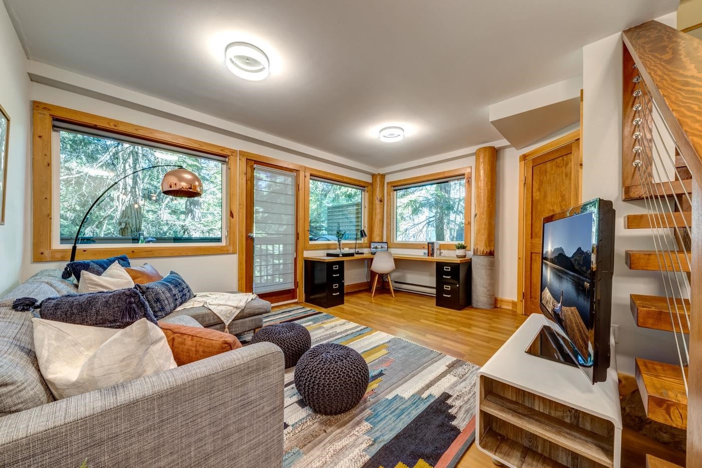 Experience the perfect blend of mountain lifestyle and modern comfort in this beautifully renovated 4-bedroom, 3-bath duplex in Bayshores - ideal for families and outdoor lovers. What could be a fourth bedroom is currently used as a large office/media room, offering flexible living options. The main living area features vaulted ceilings, wide-plank fir flooring, and a cozy wood-burning fireplace blending warmth and function. A sun-facing front deck offers sweeping views of Whistler Peak, while the private forested backyard provides calm and privacy. Complete with a versatile studio suite for guests or rental income, generous storage, and direct access to ski lifts, parks, tennis courts, lakes, and the Valley Trail—this is true Whistler living, perfected and waiting for you.